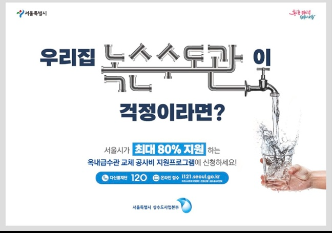 노후 수도관 교체비용 지원금 최대 180만 원 지금 바로 신청하세요.