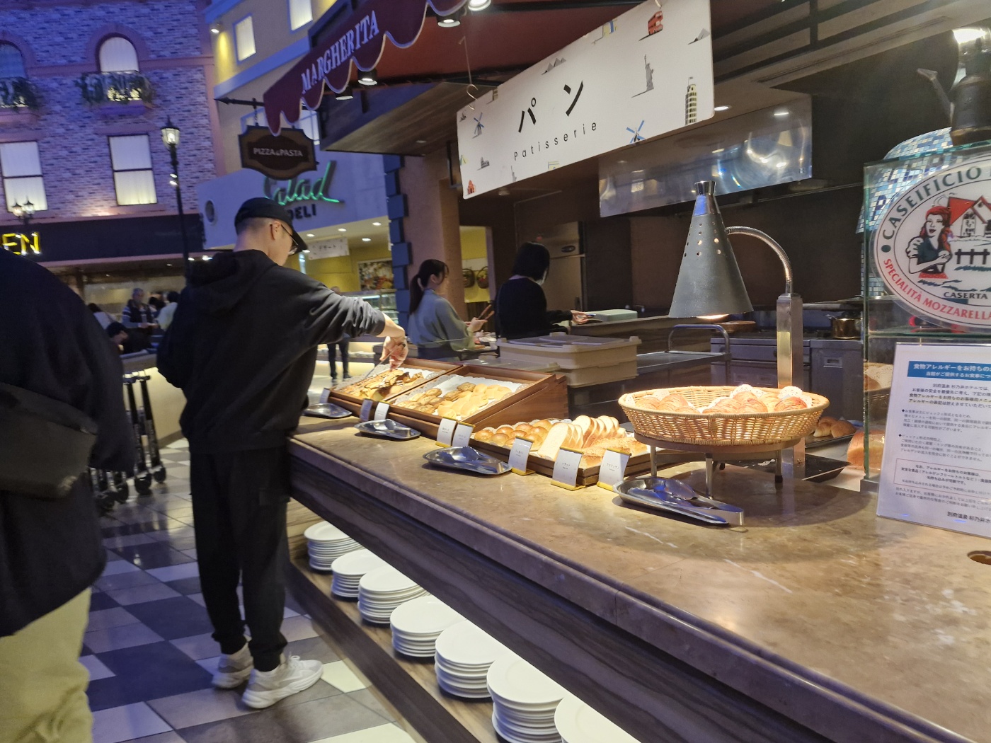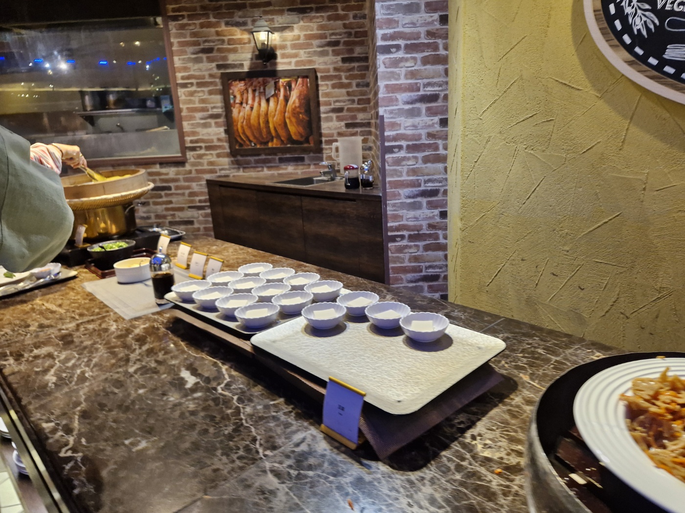 아침 7시 30분 호텔 부페식당에서 아침 식사