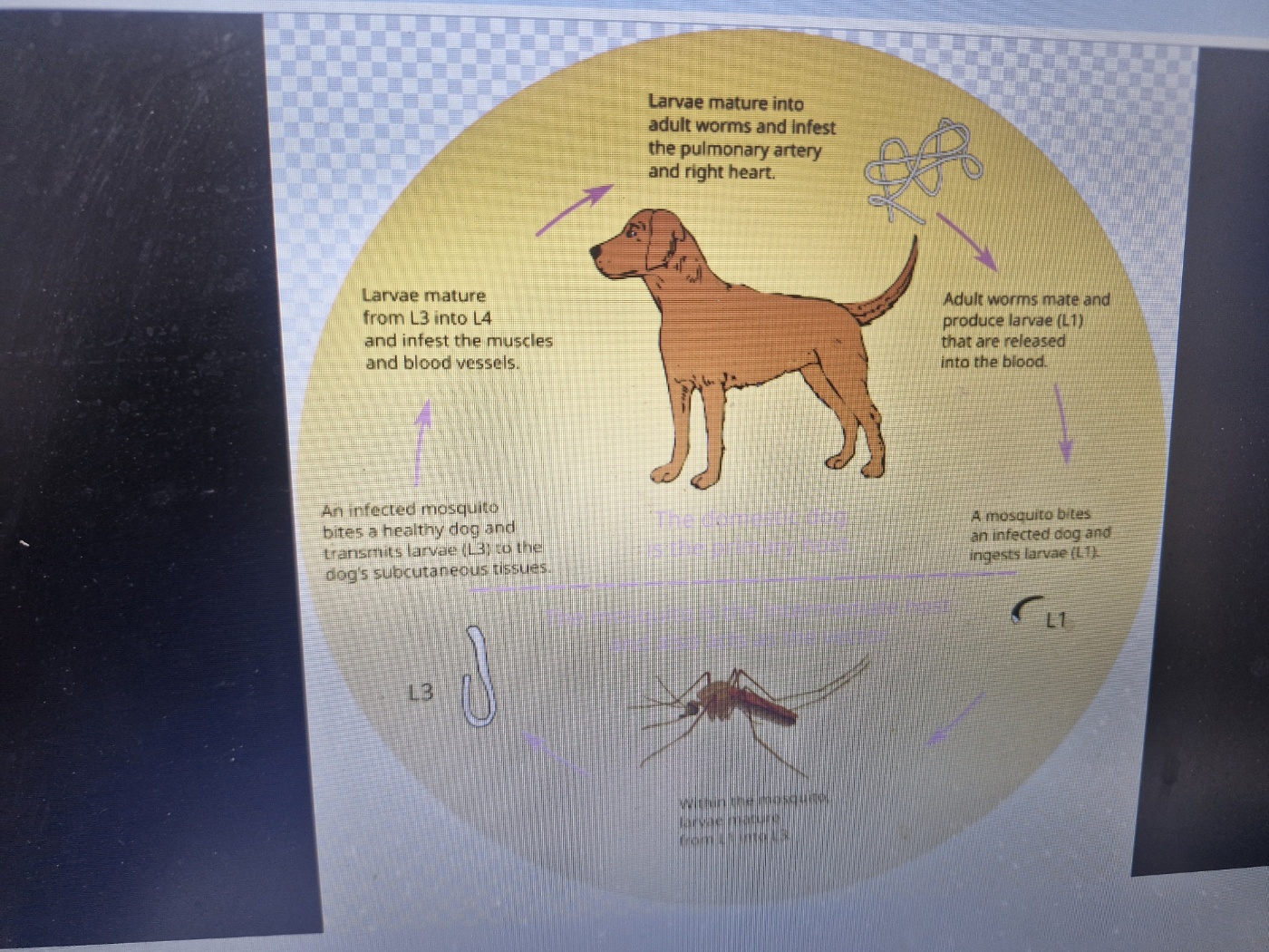 심장사상충은 숙주체네의 폐동맥에 감염되기 전가지 여러 단계의 생활사를 거치게 된다. 심장사상충은 생활사를 완료하기 위해 중간단계로 모기가 반드시 필요하다. 모기 안에서 성장률은 온도에 의해 좌우되며, 27도 이상에서는 다음 단계로 진해하는데, 약 2주간의 시간이 소요된다. 기온이 14도 이하가 되면, 성장이 멈추고 생활사는 중지된다.