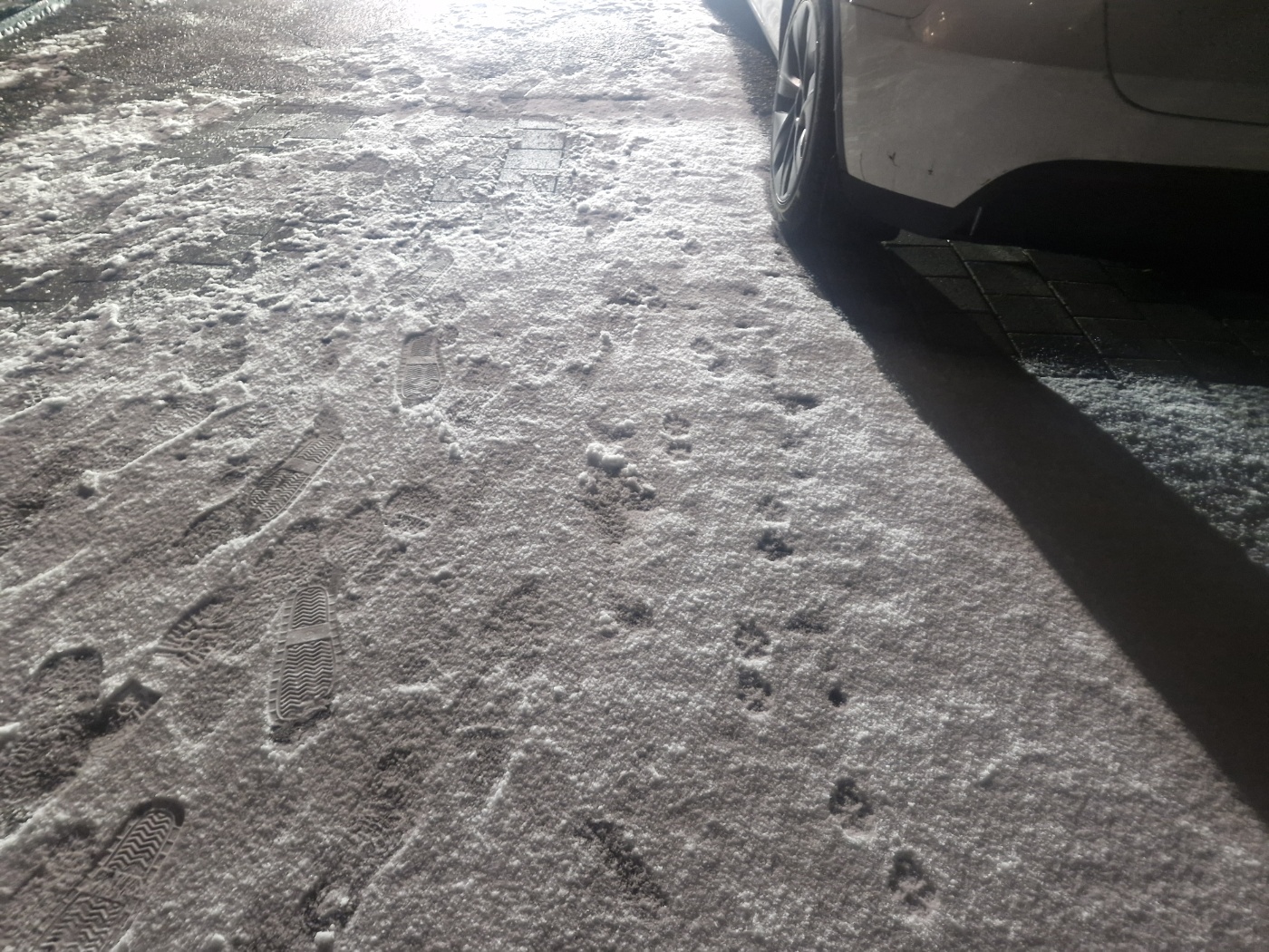 몇 시간째 내리고 있어 눈이 좀 쌓여 있어 한발