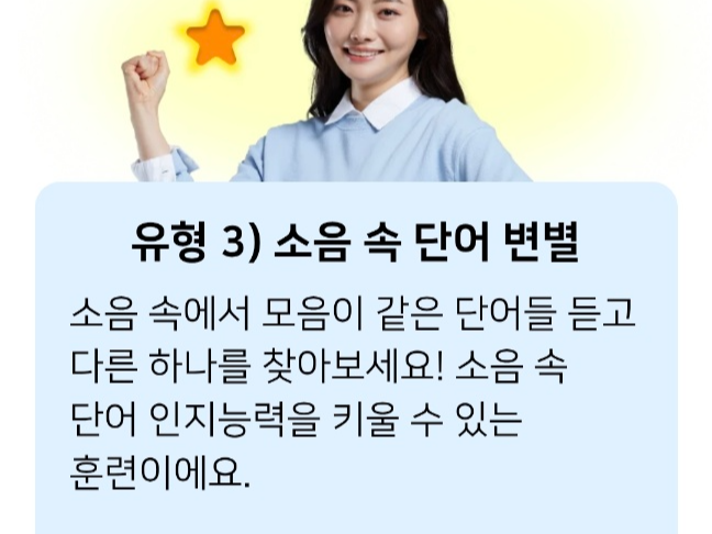 자음이 같은 단어를 듣고 하나를 찾아내는 훈련이다.