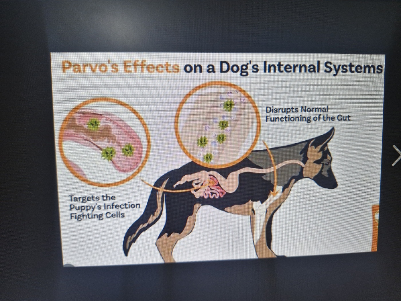 파보 장염은 주로 어린 강아지에게 발생하며, 심한 구토와 혈변을 동반한다. 빠른 탈수와 패혈증으로 이어질 수 있어 치료 시점이 조금만 늦어져도 사망 위험이 매우 높다. 전염성이 강해 산책 중 배설물이나 신발을 통해서도 감염될 수 있다.