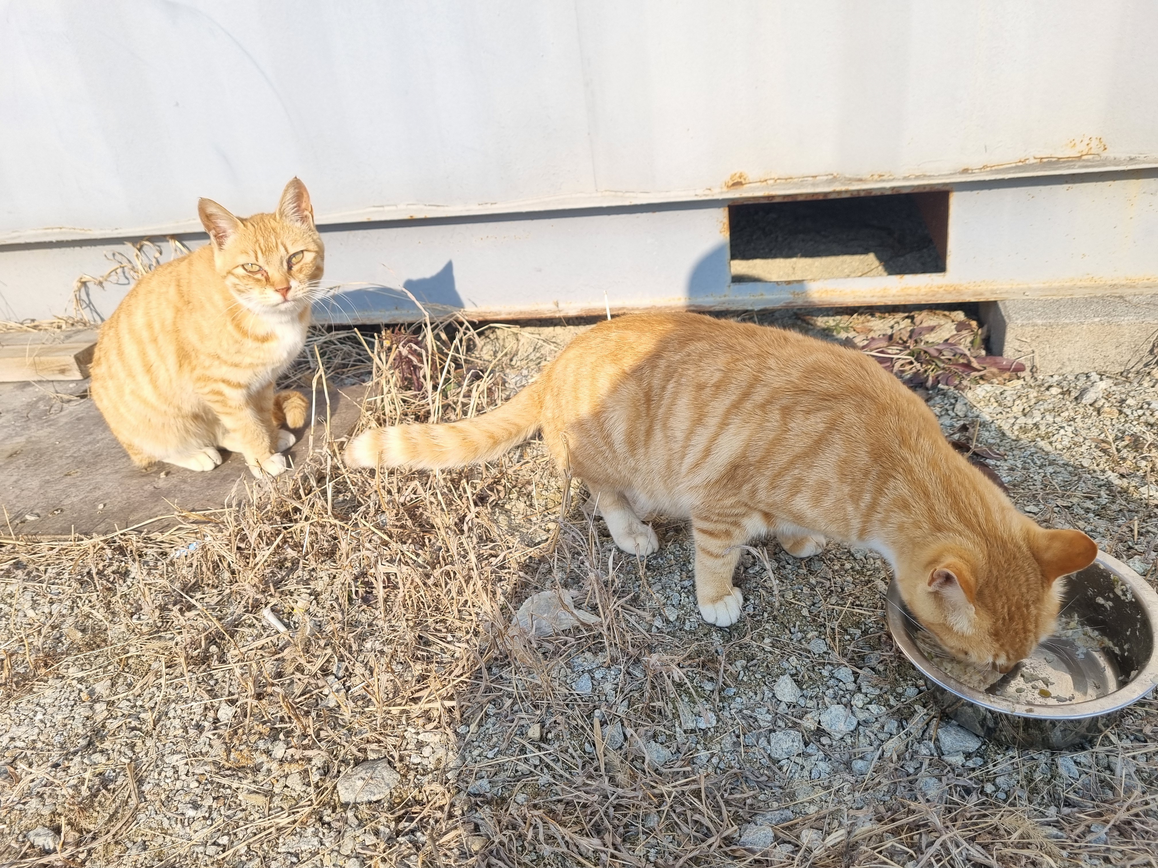 # 길 고양이랑 놀아주고 밥도 주고 왔어요.